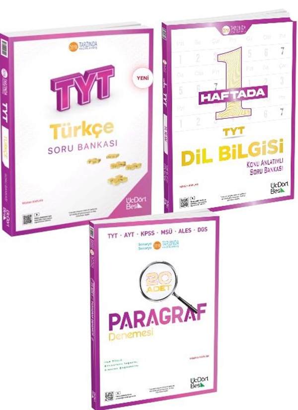 ÜÇ DÖRT BEŞ YAYINLARI-345 – TYT Türkçe-TYT Dil Bilgisi-TYT Paragraf 3’lü Set