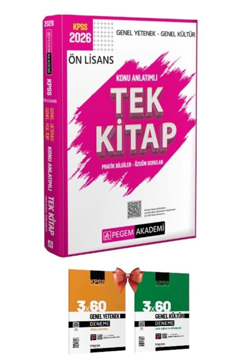 - 2026 KPSS Genel Yetenek ve Genel Kültür sınavına yönelik kapsamlı bir kaynak olan bu kitap, tüm dersleri kapsayan konu anlatımları ve soru bankası ile öğrencilere destek olur.; - 2026 basım yılı itibariyle güncel bilgilerle hazırlanmış olup, en son sınav formatlarına uygun içerik sunar.; - Konu özetli soru bankası formatında hazırlanmış olup, konuların anlaşılmasını ve pekiştirilmesini kolaylaştırır.; - KPSS sınavına yönelik özel olarak tasarlanmış içeriğiyle sınavda başarıya ulaşmanız için ideal bir kaynaktır.; - Setli ürün olarak sunulması, farklı ihtiyaçlara yönelik tamamlayıcı materyallerle desteklenmiş bir çalışma deneyimi yaşatır.;
