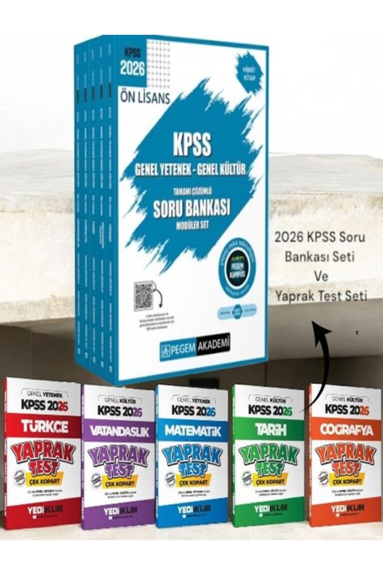 - KPSS Genel Yetenek ve Genel Kültür sınavlarına yönelik özel olarak hazırlanmış, Komisyon tarafından derlenen set.; .; - KPSS sınavına yönelik tüm dersleri kapsayan deneme testleri ile sınava yönelik eksiksiz bir hazırlık süreci sunar.; - 2026 yılında yayımlanan güncel materyallerle donatılmıştır; böylece en yeni soru tiplerine ve konulara hakim olursunuz.;