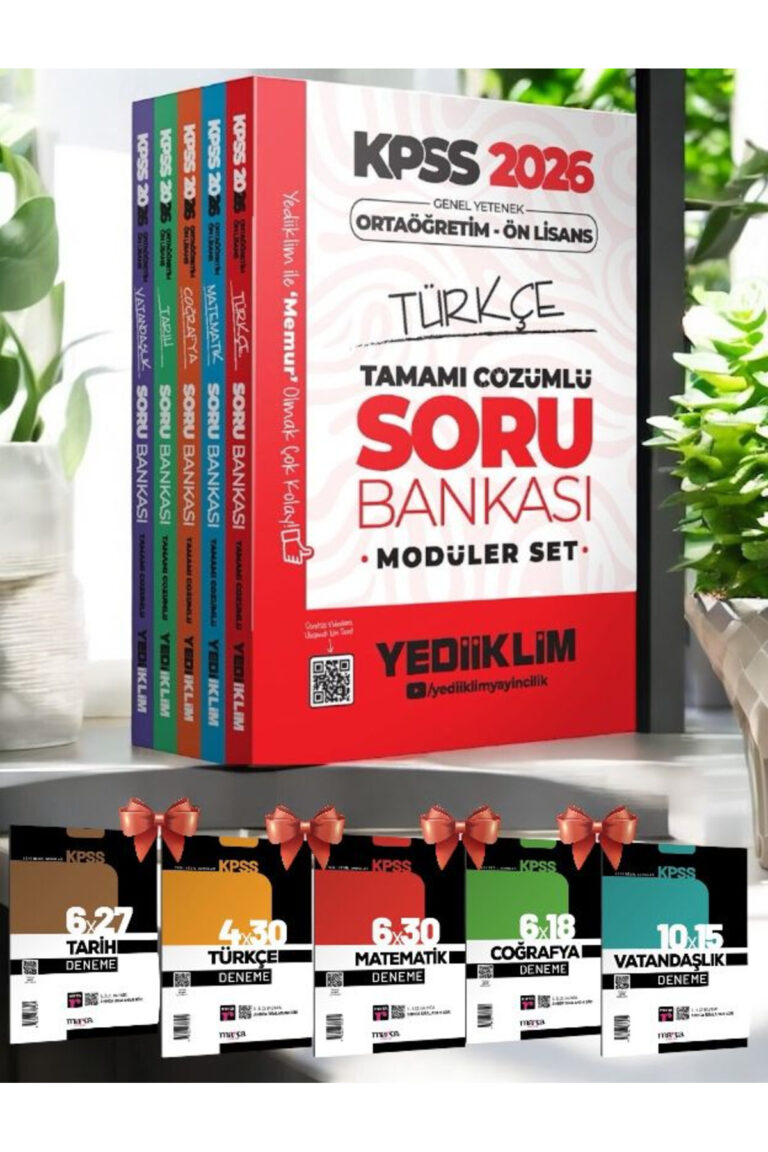 Yediiklim 2026 KPSS Ortaöğretim Ön Lisans Genel Yetenek Genel Kültür Tamamı Çözümlü Modüler Soru Bankası Seti;Isbn : 9786254319136;Sayfa Sayısı : 960;Ebat : 19*27;* Türkçe Tamamı Çözümlü Soru Bankası 176 sayfa;* Matematik Tamamı Çözümlü Soru Bankası: 368 sayfa;* Tarih Tamamı Çözümlü Soru Bankası: 136 sayfa;* Coğrafya Tamamı Çözümlü Soru Bankası: 160 sayfa;* Vatandaşlık Tamamı Çözümlü Soru Bankası: 120 sayfa