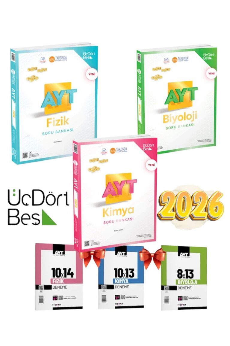 345-2026 AYT Fizik Kimya Biyololoji Soru Bankası Fen Bilimleri Sayısal Set+AYT 3 Deneme Set Hediye