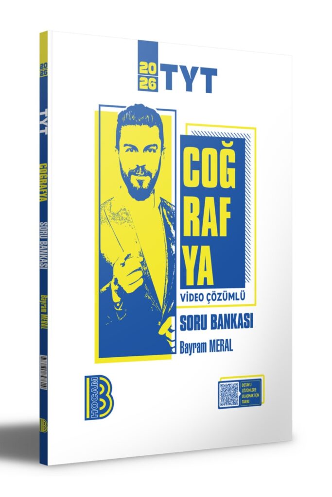 - Bayram Meral tarafından hazırlanan 2026 TYT Coğrafya Tamamı Video Çözümlü Soru Bankası, öğrencilerin TYT sınavına yönelik kapsamlı bir çalışma kaynağı sunar.;- 2026 yılında basılan bu kitap, güncel ve özgün içerikleriyle adayların sınavda karşılaşabilecekleri sorulara hakim olmalarına yardımcı olur.;- Büyük boy tasarımı sayesinde okuma kolaylığı sağlar ve not alma imkanı sunar.;- TYT & AYT sınavlarına yönelik hazırlanmış olup, her iki sınav tipine yönelik sorular içermektedir.;- Türkçe basım dili ile hazırlanmış olup, anadilinizde rahatça çalışmanızı sağlar.;- 201-250 sayfa aralığındaki içeriğiyle geniş kapsamlı bir soru bankası deneyimi sunar.;- Tekil ürün olarak sunulan bu kitap, ekstra materyal ihtiyacını ortadan kaldırarak pratik bir çalışma yöntemi sağlar.;- Tüm dersleri kapsayan içeriğiyle TYT sınavına yönelik kapsamlı bir hazırlık imkanı verir.