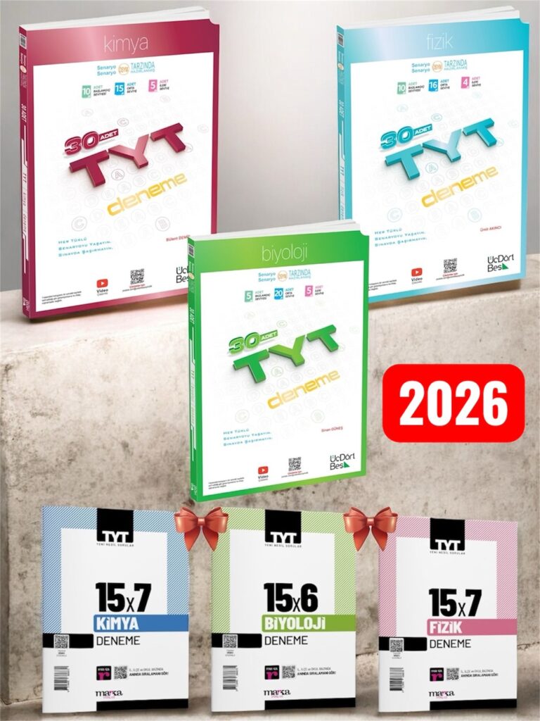 üç dört beş yayınları-2026 Tyt Fen Bilimleri Fizik – Kimya – Biyoloji Tyt Deneme Seti Ve Marka Yayınları Tyt Deneme Hediye